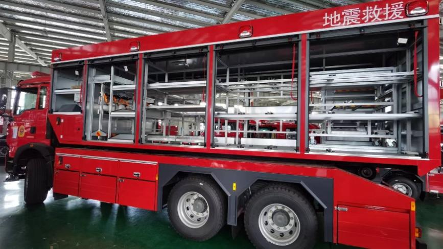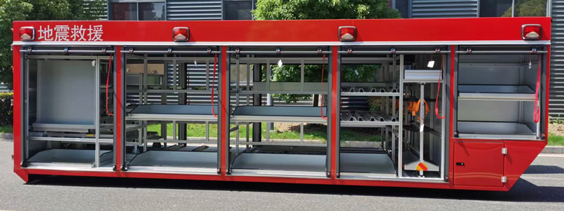 3.2 | 多功能器材模塊箱:箱體左右兩側(cè)設(shè)有防水、防塵的鋁合金卷簾門,卷簾門觸發(fā)電磁傳感器自動(dòng)開關(guān)LED照明。箱體內(nèi)根據(jù)器材使用方式不 同設(shè)置有各種專用拖架、破拆工具拖架、抽屜、推車模塊、可調(diào)器材盒等機(jī)構(gòu)放 置和固定各種器材裝備,在裝卸和運(yùn)輸過程中不會(huì)發(fā)生移動(dòng)??煞胖闷鞑模?30件 |